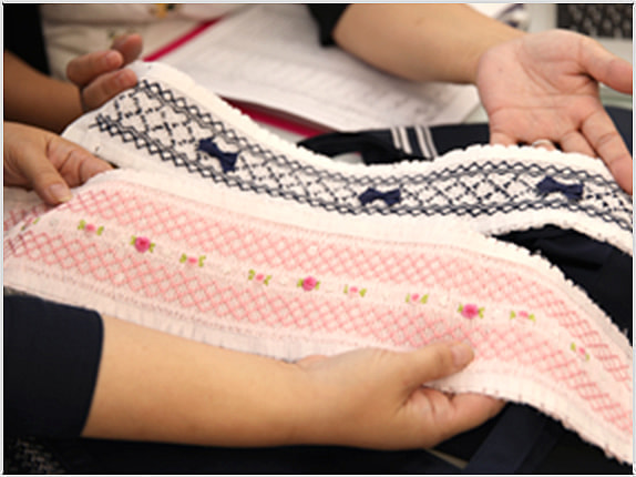 そこでスモッキング刺繍を拝見した際、私自身の幼少期にスモッキング刺繍ワンピースが流行っていたこともあり、懐かしさと刺繍の繊細な美しさにとても感動したことを今でも鮮明に覚えています。
