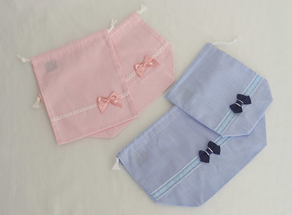 刺繍入りシューズバッグ。色違いの刺繍でご兄弟や洗替え用にいかがでしょうか。