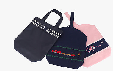 毎日の通学用~お受験など様々なシーンで安心してお使いいただけるシューズバッグです。
