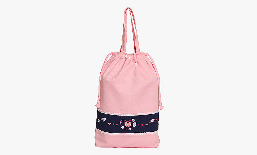 手刺繍持ち手付き巾着袋